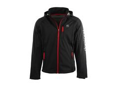 Dit lichtgewicht softshelljack met een knuffelzachte fleecevoering is verkrijgbaar in zwart met rode accenten en een matte laserprint op de rug en linkermouw.